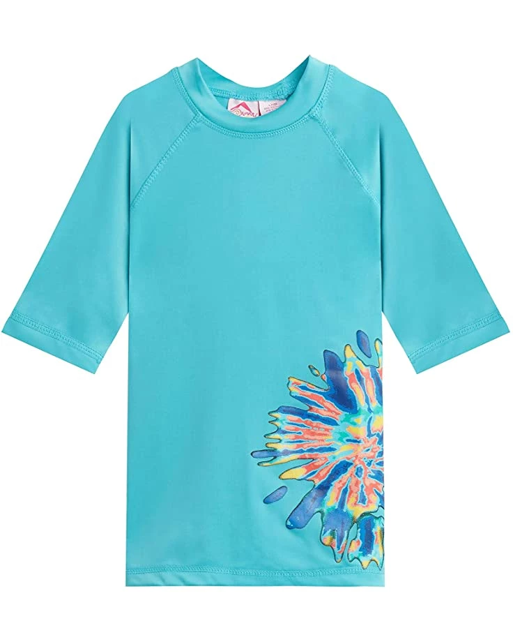 - Have her covered at the beach or pool with the Kanu Surfยฎ Karlie UPF 50+ Sun Protective Rashguard Swim Shirt. This swim top is crafted with a crew neckline, short sleeves, straight hemline and a multicolored splatter at the lower left to have her swim time noticed.