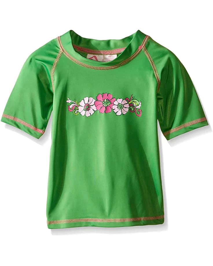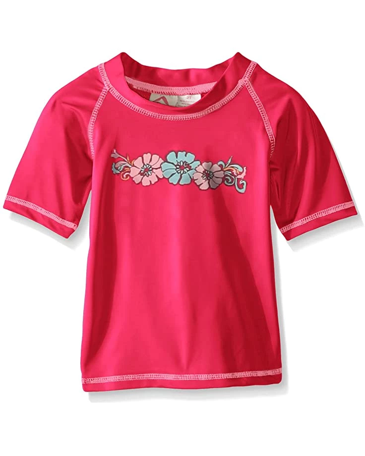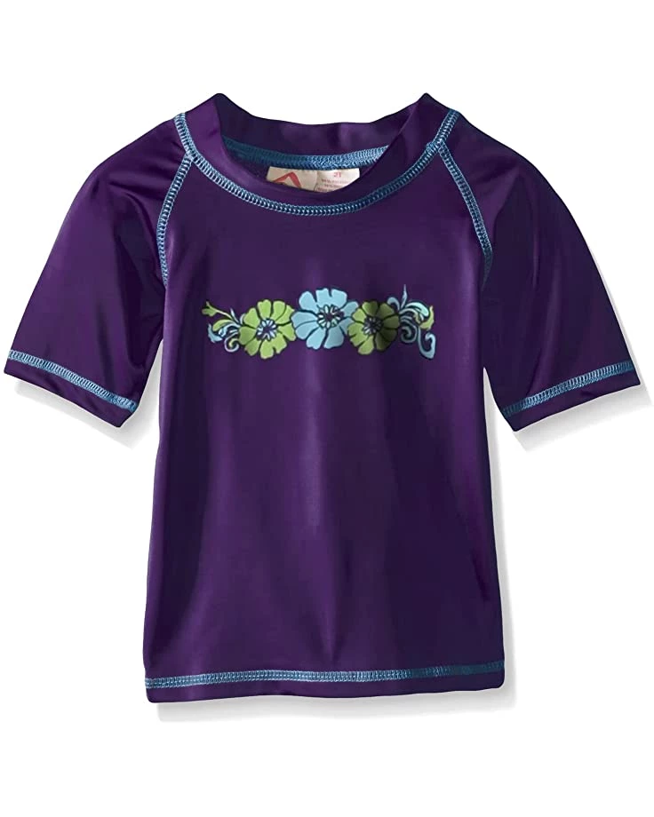 - Short-sleeve rashguard in a pull-on styling offers round neck and straight hem.
